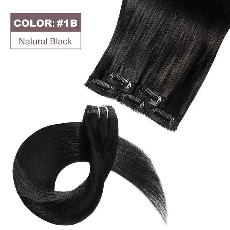 clip in Hair Extensions Natural Black Real Human Hair 16inch 30g 5pcs to add volume Remy Human Hair Extensions