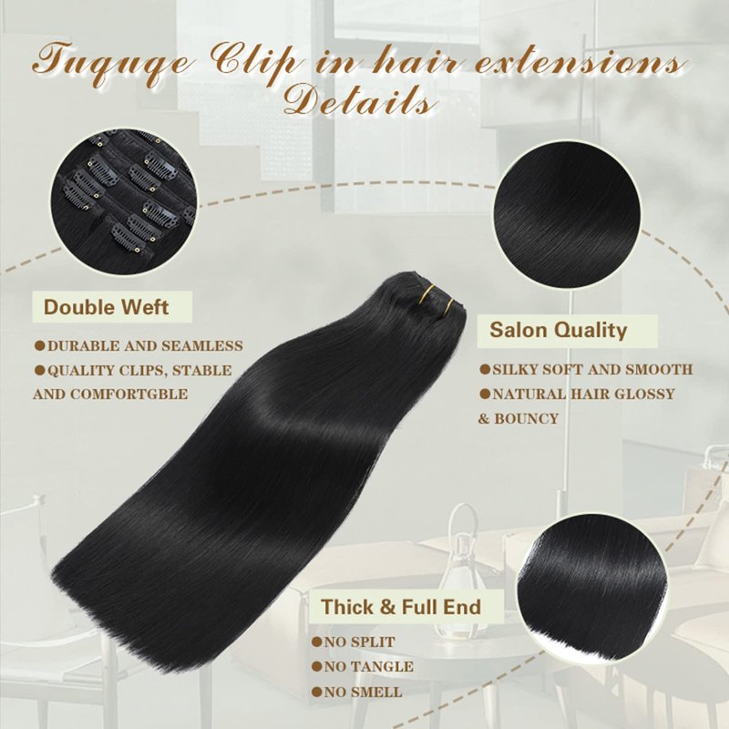 Clip in Hair Extensions Real Human Hair 22 Inch Jet Black Hair Extensions Clip in Real Human Hair 120g Clip in Hair Extensions for Black Women (22Inch, 120g,#1)
