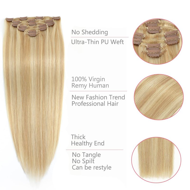 - 【120g Full Head】Remy human hair clip in extensions. Our Clip in Hair Extensions 9pcs 120g is enough to make a head.