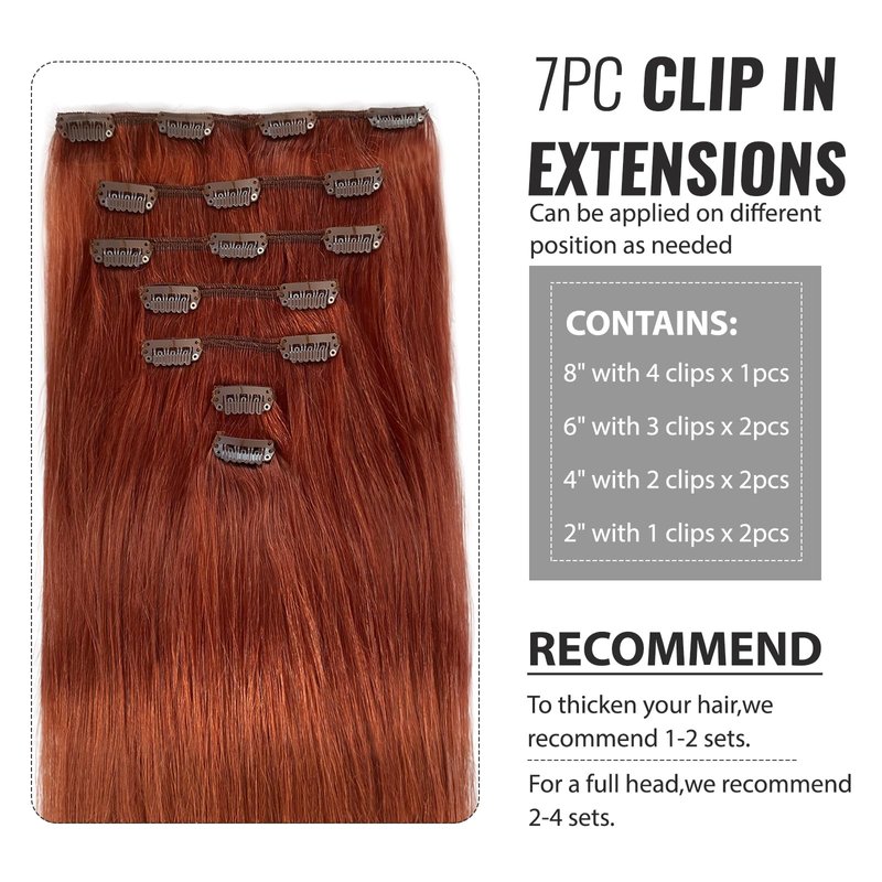 - 💖[Clip in Hair Extensions Specification] Our clip hair extensions is with 7 different width pieces,it suits your needs in different parts of the hair.16 clips per set,70g for hair with clips,to thicken your hair,we recommend 1-2 sets;for a full head,we recommend 2-4 sets.We put two more clips in the package for replacement.