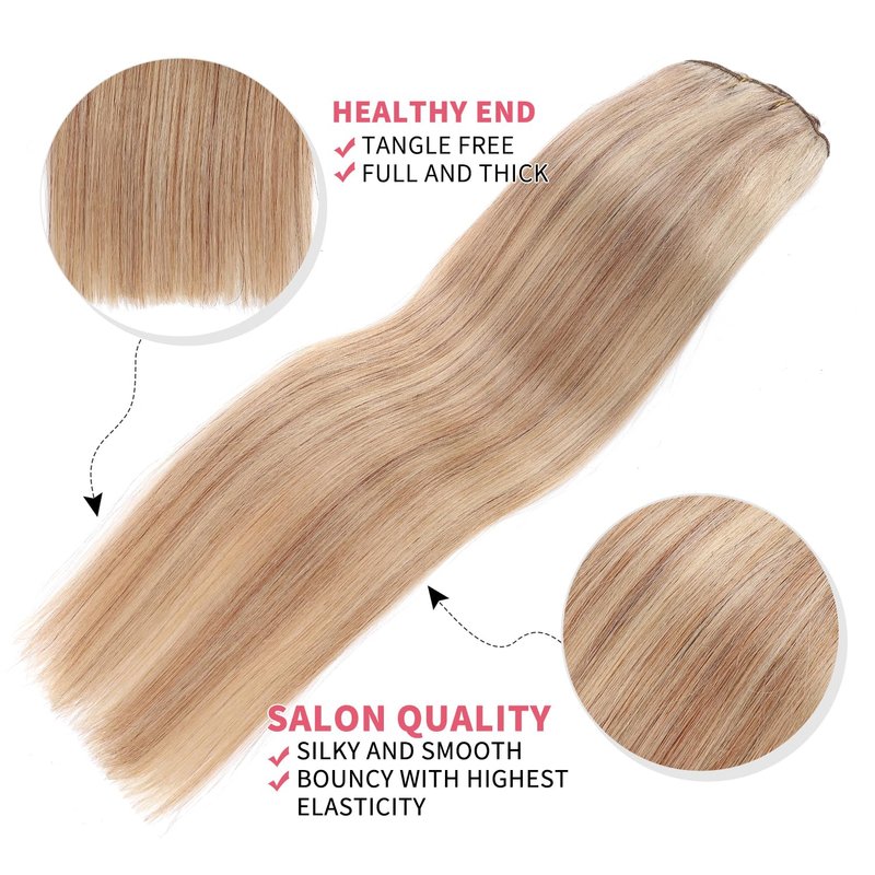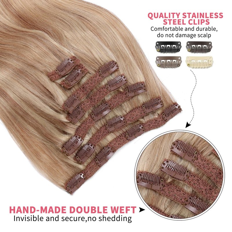 - 【 Versatile Style 】There's are 5 colors you can choose, 1B Natural Black, Color #2 Dark Brown, color #4 Chocolate Brown, color 613 Blonde, and color P18/22, free your imagination and creativity to express your unique style with our premium hair clip extensions for women, you can curl ,dye and style it for any possibility and stunning looks