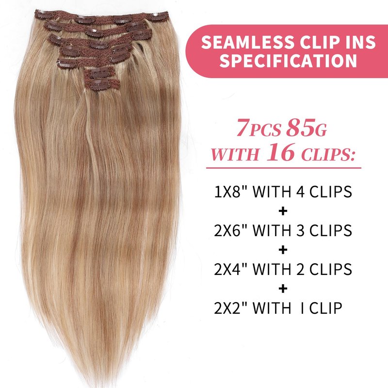- 【 Specification 】This is straight clip on hair extensions, each set weight 2.65oz/75g for 14inch, weight 3oz/85g for 18inch, includes 7pcs hairpiece with 16pcs secure clips; normally 1-2 set for a regular thickness look, if you wanna make it more thick, you can take more per your need, like 2-4 sets and even more.