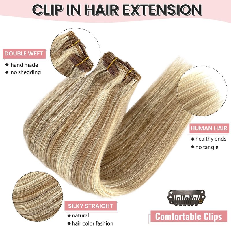 Clip in Hair Extensions Real Human Hair, Beige Blonde and Platinum Blonde Hair Extensions Clip ins 22 Inch Straight Blonde Highlighted Silky Natural Remy Hair Extensions Clip in Human Hair 70g 7pcs
