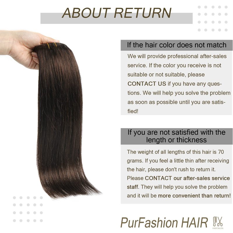 - 【Color Differences & Color Match Service】Feel free to contact us if you have any problems about product. And plz keep the hair in its original condition if you want to return hair extensions. Due to the light and display, the exact color may be slightly different from the color shown in the picture. In case you're not sure about the color of the hair extension, kindly share an image of your hair with us. We will provide you with color matching service.