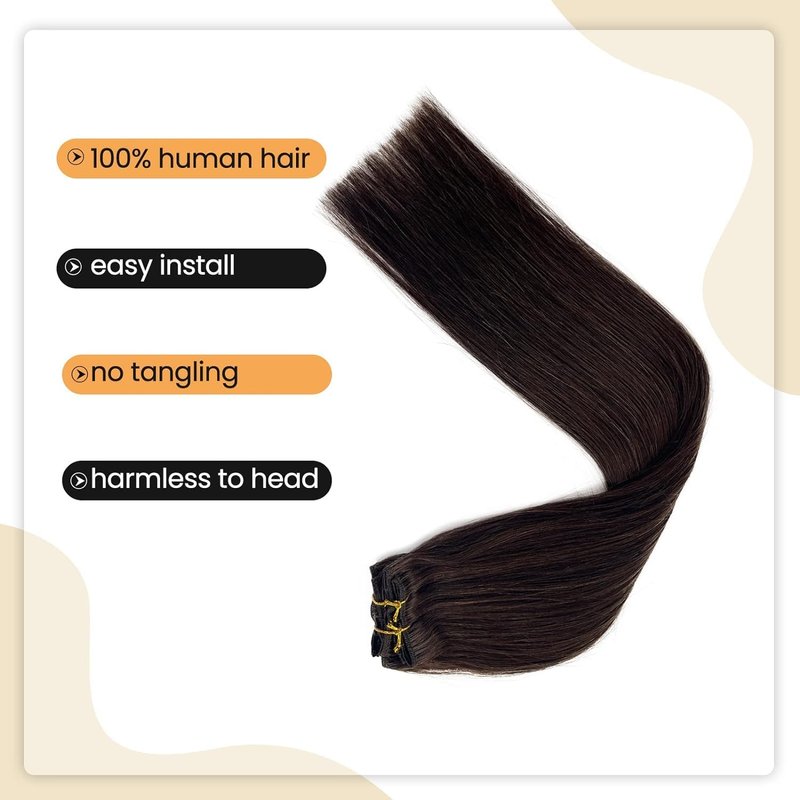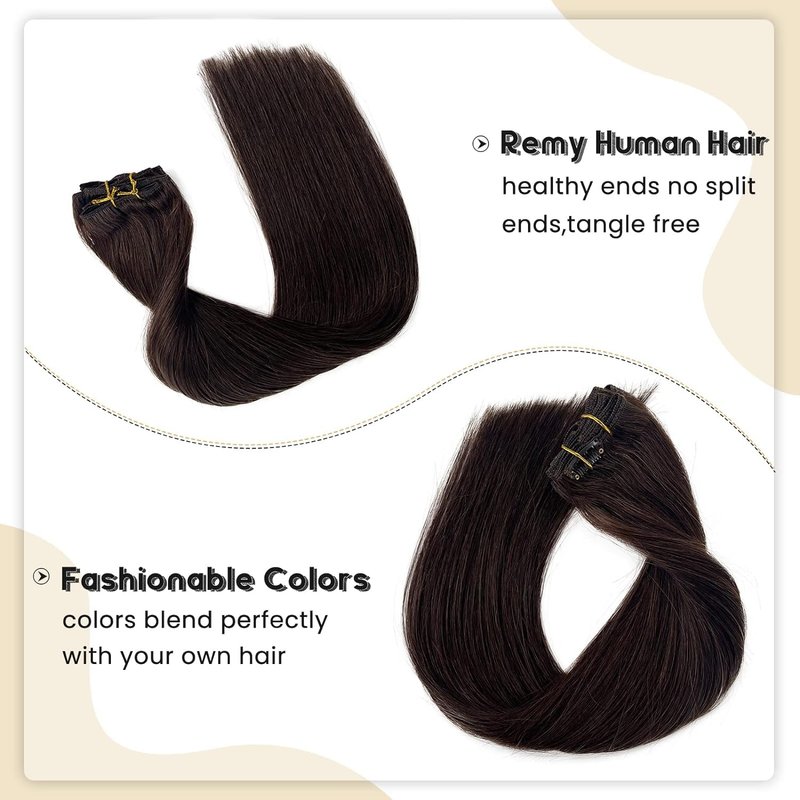 - 【Top Quality Remy Human Hair】-- Our clip in real hair extensions made of 100% real human hair with finished length 15-22 inches, which are one of the best quality clip in human hair extensions on the market. Soft and silky, smooth and shinny, our Remy Human Hair Extensions looks very natural, which would match your hair color prefectly, like your own hair.