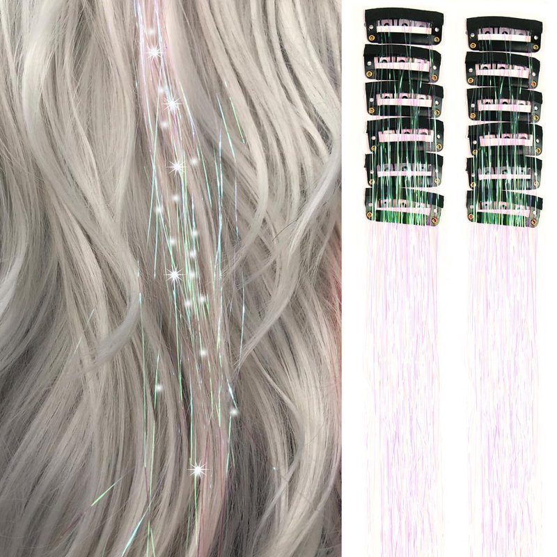 - 1. 【Easy to install】: Clip in hair tinsel has a metal clip design . you just need to open and close the tension clip to remove and installation. The simple operation saves time. You can easily incorporate the glitter into your hair and instantly become "highlight glitter" which allows you to change your hairstyle quickly and easily And very firmly installed in the position you want.