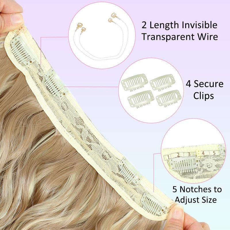5. Comfortable and Secure:It has 2 diffrent length invisible wire and 4 clips.Two sizes of invisible wire with multiple adjustable sizes can perfectly fit whatever head circumference. At the same time, four clips make it more firmly connected, so that you can wear the hair extension without worries
