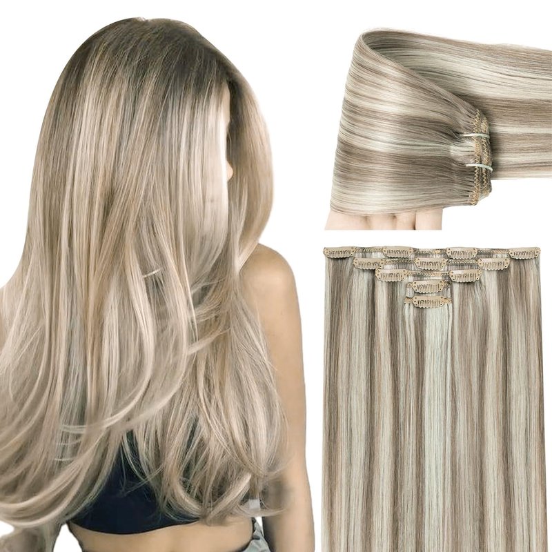 - 【Comfortable & Secure & Quick to Wear】Stainlessteel clips with silicone to ensure a tight grip and prevent slipping, no damage to hair and scalp. Unlike other hair extension types, natural straight clip in human hair extensions for women can be worn and took off freely within 5 minutes by yourself to change hairstyle for different occasions. (Wedding, Concerts, Make-up Parties, Dating, Prom and on). Even if it's your first time wearing a hair extension, you can easily handle it.