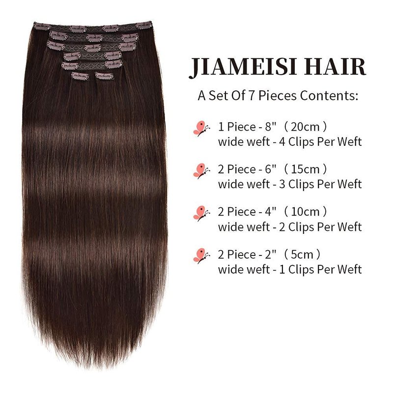 - 1.Human Hair Clip in Hair Extensions:Jiameisi clip-ins are hand-crafted product and made of 100% Remy human hair which will feels as silky and smooth as your own hair.
