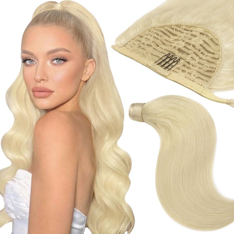 Clip in Ponytail Hair Extensions Long Straight Pony tail Hair Extensions Silky Loxxy 100% Real Remy Long Ponytail Extension Extension 18 Inch Platinum Blonde 80g