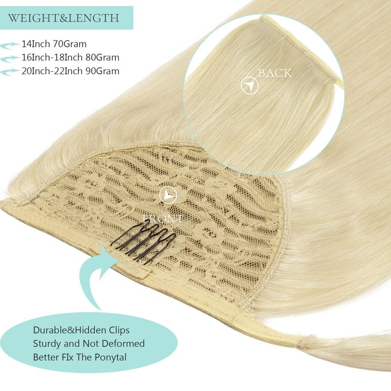 - [Pony Tails Hair Extensions Length & Weight]: Offer 14/16/18/20/22 inch ponytail hair extensions in any colour to perfectly match with your hair. 14’’-70g, 16’’-80g, 18’’-80g, 20’’-90g, 22’’-90g. We can customize your size for you!