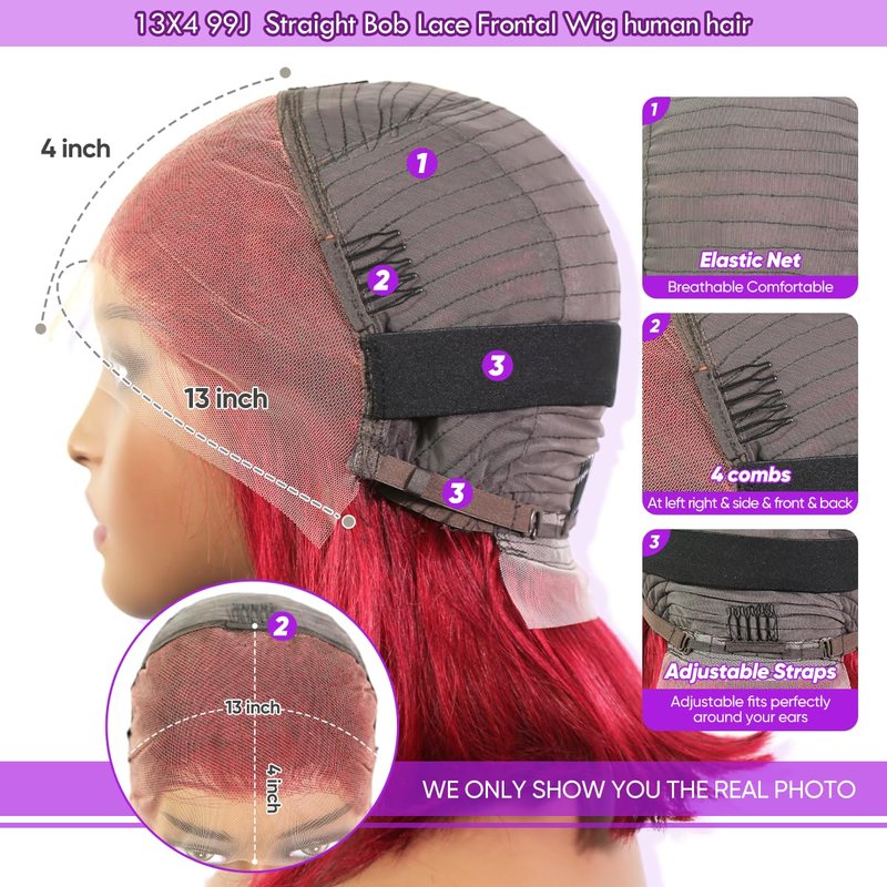 - 99j Lace Front Wigs Human Hair Cap Size: Average Cap Size (22.5 Inch) With Adjustable Straps And 3 Combs Burgundy Wig Human Hair Bob Wig, It Can Match Most People Perfectly