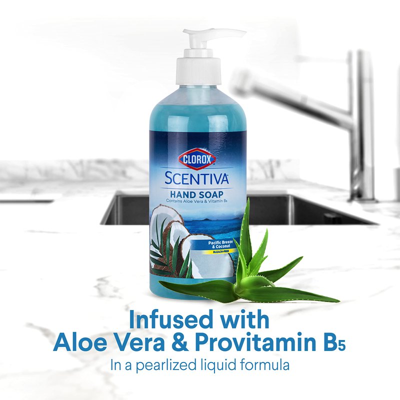 - WITH SOOTHING ALOE VERA — Clorox Scentiva hand soap has Aloe Vera and Vitamin B5 to help keep hands moisturized