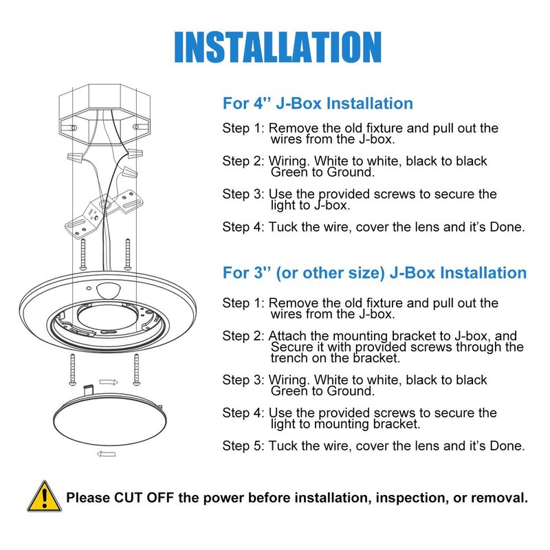 - Real Time Saver- Straight forward installation to 4 inch junction boxes. No bulb to replace, maintenance free. Stay away from the hassle of changing batteries or recharge!
