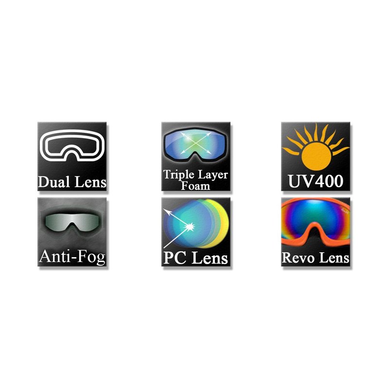 High Quality Polycarbonate Lens, scratch and impact resistant, ultra-lightweight design, UV400 provides both 100% of both UVA and UVB Protection. UV intensity increases with altitude and protecting your eyes from harmful UV rays will prevent eye fatigue as well as damage to your retinas. Goggle Care: