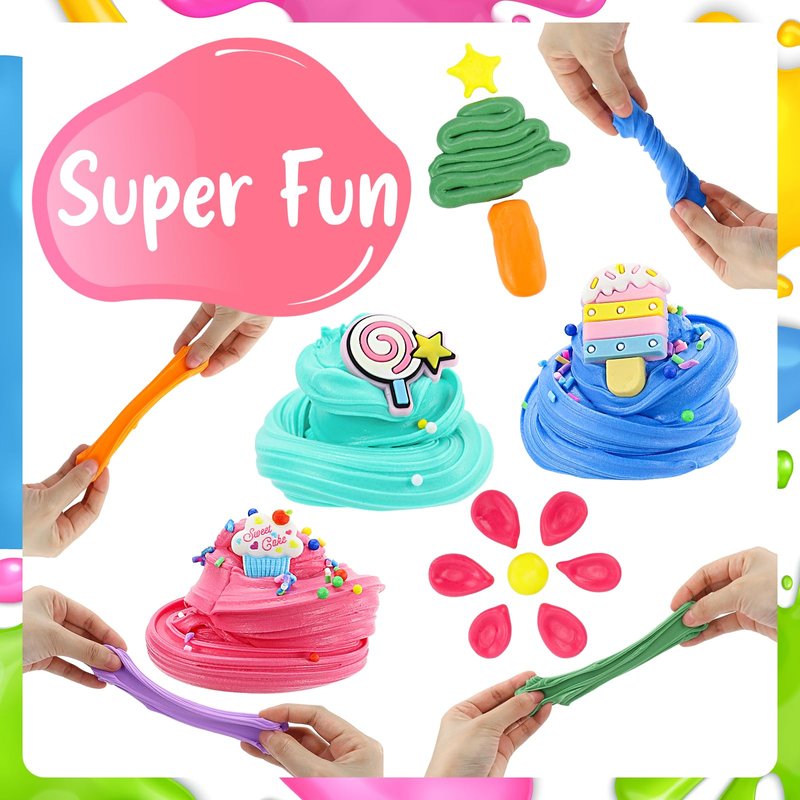 - 💕【Safe and Gentle Slime Kit】Made of high quality raw materials, environmentally friendly, non-toxic and non-staining. The fluffy kids slime smells aromatic because we use food grade flavors, not industrial flavors. It will not stick to your hands when you play with this bouncy slime. Absolutely safe for children and adults. Children need to be supervised by an adult. Not suitable for children under 3 years old.