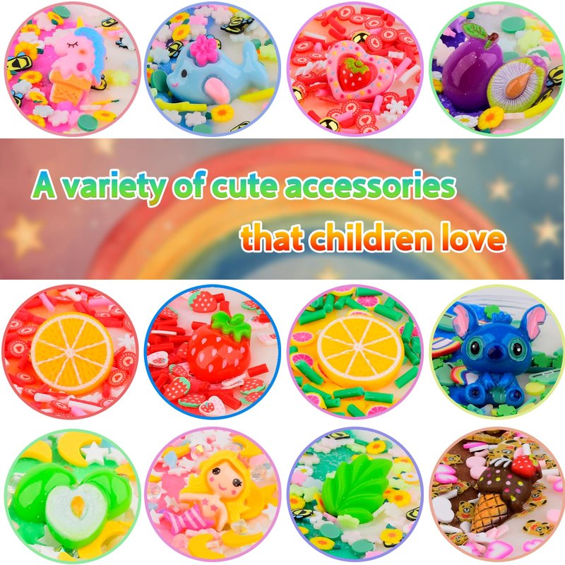 - 👑 Inspire Creativity. Our 12 Pack Cloud Slime Kit provides endless possibilities for slime lovers to create their own unique textures and colors with our rich slime charms supplies.