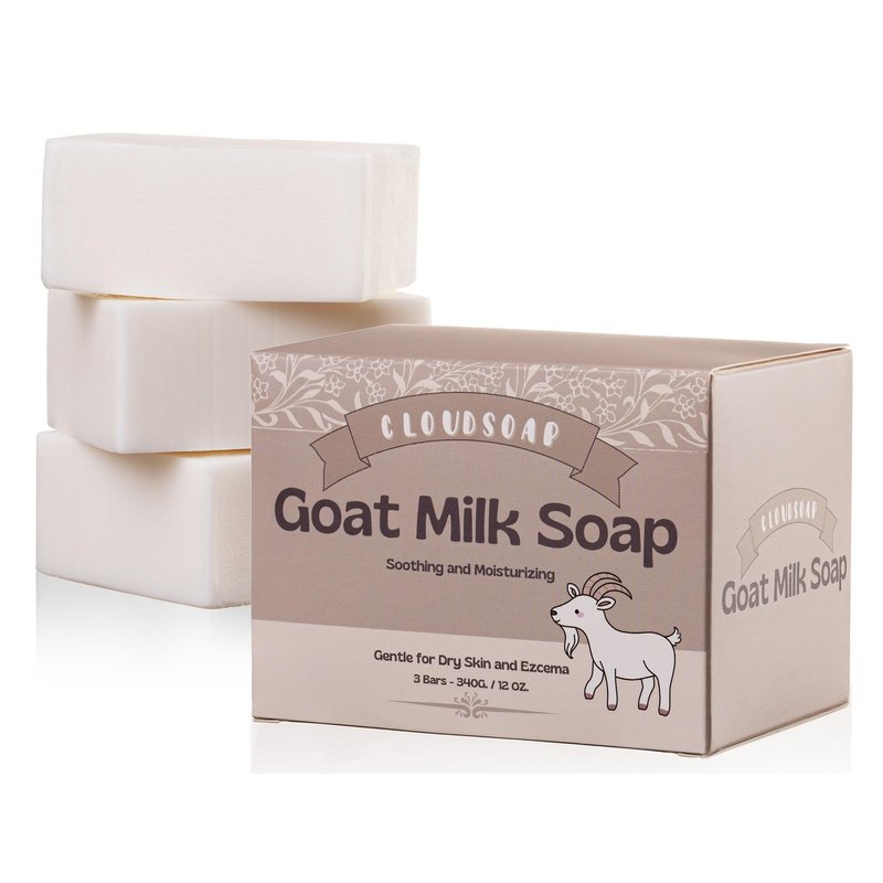 Cloudsoap New Natural Goat Milk Soap Bar (3 Pack - 4 oz Each) - Moisturizing for Dry, Itchy, Eczema, and Sensitive Skin - Gentle Cleansing for Kids, Babies, Women, and Men