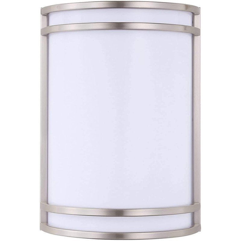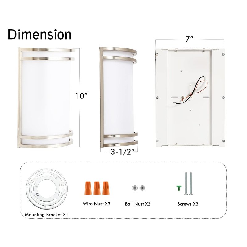 - Simple and Modern: The delicately designed LED wall sconce adds a finishing touch to your home's existing decor.The solid brushed nickel metal rim partners with an arc lamp shade to work perfectly with your bathroom fixtures and accessories. Integrated with LED chips, not bulb replaceable