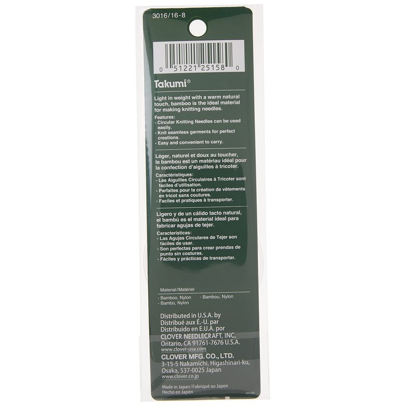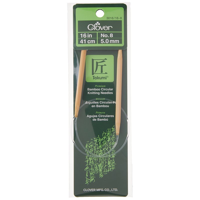 Clover 8 Takumi Circular 16" Size Bamboo Knitting Needle, Brown, Clear