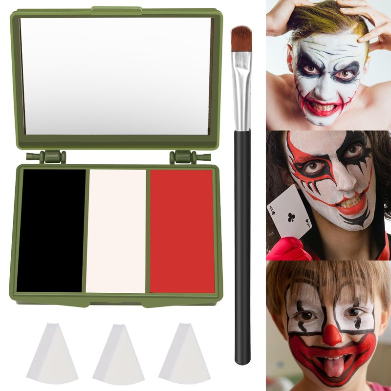 - Body Painting Plate:Face body paint contains three colors: black, white and red. The rich colors have strong coloring power and are easy to apply and blend, the combination of 3 colors can help you create many different looks. It can help you create amazing clown makeup and create a lot of fun in various occasions.