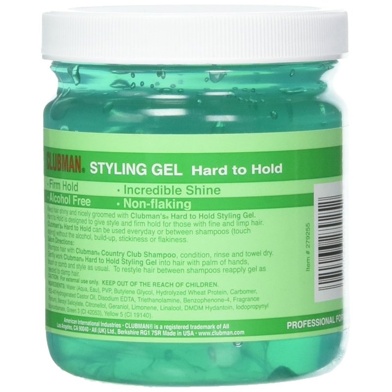 - All-Day Hold Hair Gel: Clubman’s styling gel is designed to provide style and a strong hold to keep hair shiny and nicely groomed. Can be used everyday or between shampoos.