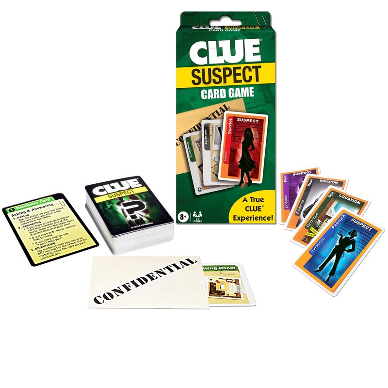 Clue Suspect Card Game - All The Fun of Clue - in Minutes!, by Winning Moves Games USA, Portable Card Game Edition of the Mystery Game Clue, for 3 to 4 Players, Ages 8+