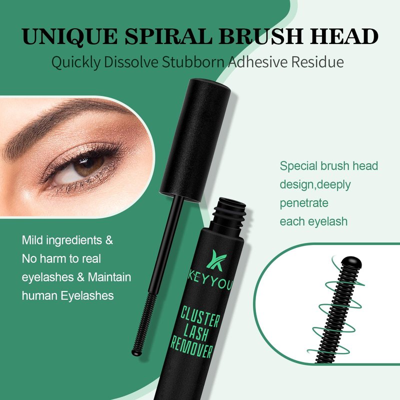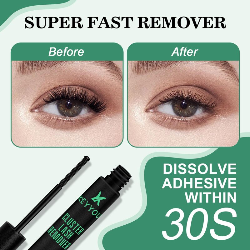 - 【FAST DISSOLVE WITHIN 30S】KEYYOU oil-based lash remover can quickly and effectively dissolve the eyelash adhesive within 30s. The brush-on applicator can precisely brush off your lash glue and DIY cluster lashes.