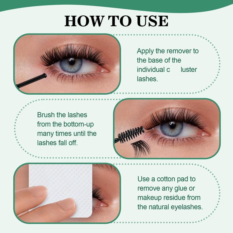 - 【HOW TO REMOVE】 Simply apply the lash adhesive remover to the base of your cluster lashes, wait 30 seconds, and brush from bottom to top until they fall off. Use a cotton pad or swab to remove any remaining glue residue.