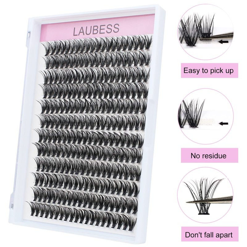 - High Quality: LAUBESS cluster lashes are made of Korean imported materials, super soft, and lightweight. Our eyelash clusters keep their perfect curl. Long-time retention and waterproof.