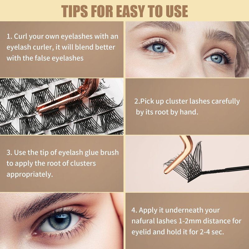4.Apply cluster lashes under natural lashes 1-2mm away from the eyelid.