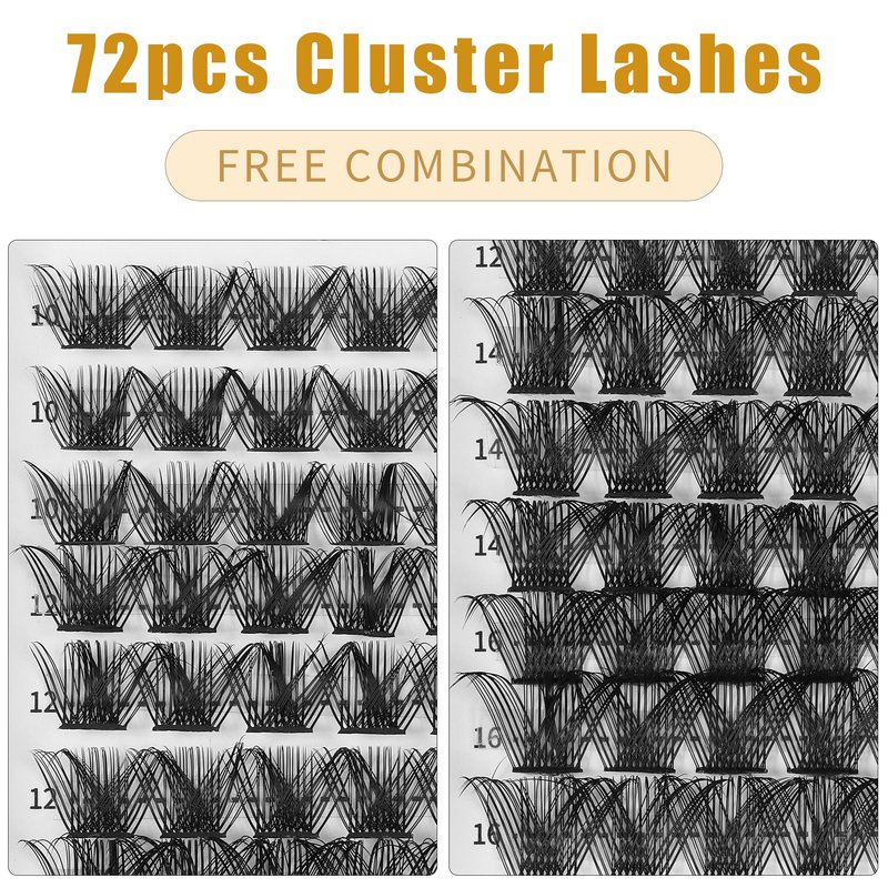 Cluster Lashes 72 Individual Lashes Clusters Eyelash Extensions False Eyelashes DIY Wispy Fluffy Lash Extension Kit Reusable False Eyelashes Natural Look Mix 10-16mm C D Curl (BM 02)