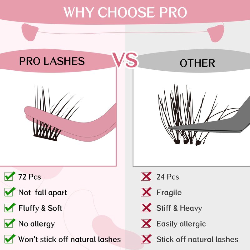 - Bring salon to your home: Pro LashBeauty Lash clusters are easy to apply. Divided individual Lashes into sections, easy to pick up and apply by yourself. You can apply the eyelashes with different lengths and styles according to different occasion. You will become a master of DIY lash extensions with a little practice!