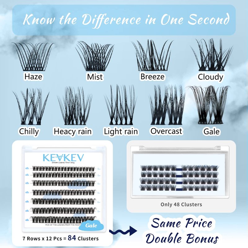 - Different lash styles & length to suit your mood: KevKev offers multiple lengths and curls for different lash look. 84 lash clusters, 8mm - 16mm in length. Try to find your own lash style at KevKev.