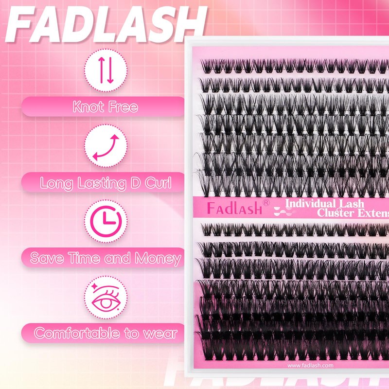 DIY individual clusters at home: FADLASH lash clusters are easy to apply. Easy to put lashes on, gorgeous results, and eyelash clusters are not easily fall apart. Cluters take less time to complete each eye. Now save so much money and time.