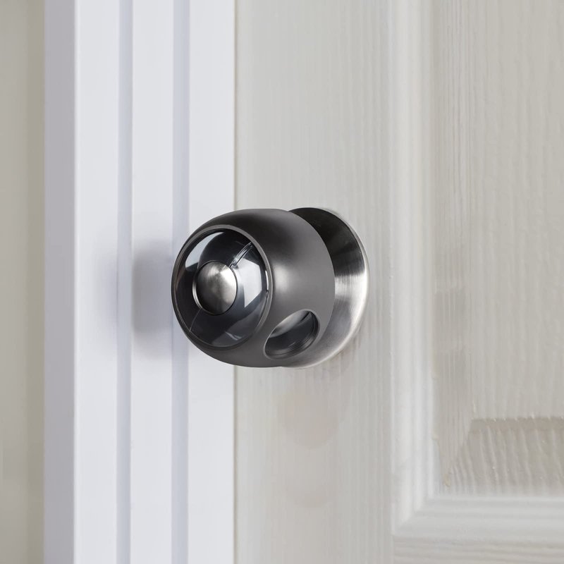 This pack of 4 child doorknob covers helps prevent wandering toddlers from getting locked in or out of rooms. Designed to be difficult to remove by tiny hands, these child safety doorknob covers can be installed in seconds.