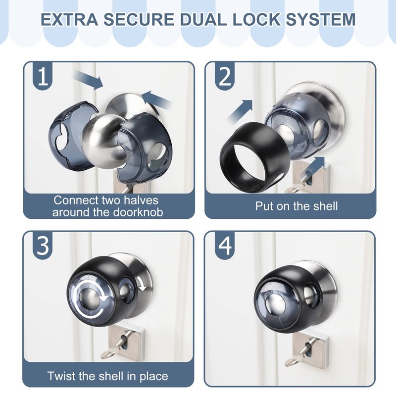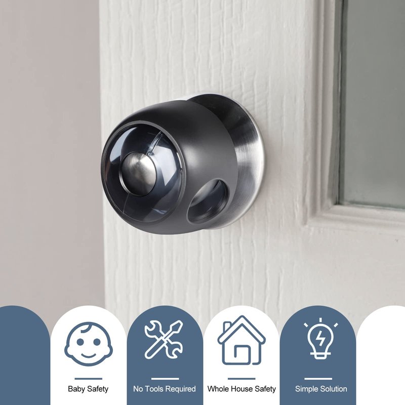 - 【HARD FOR TINY FINGERS TO TAKE APART 】The dual-lock system adds an extra layer of protection to your babyproofing doorknob locks. The knob cover spins freely so tiny hands can't twist the door knob open.