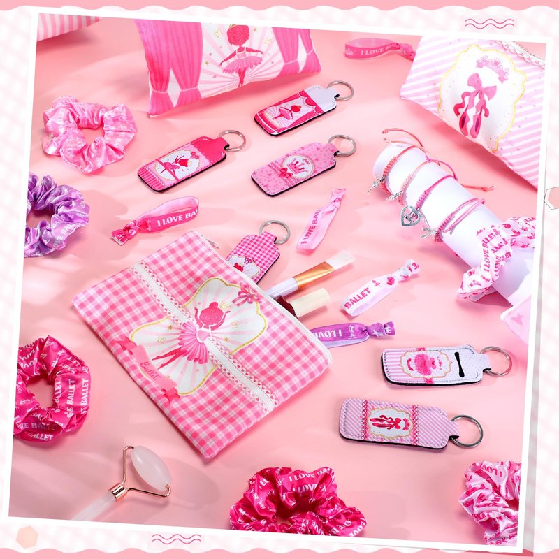 - Rich Ballet Gifts: these dance party favors provide you with what you need, you'll find 12 ballet theme makeup bags, 12 adjustable bracelets, 12 hair ties, 12 keychains, and 12 scrunchies; Each item is designed to meet the various demands of the consumer, enough for your daily use and sharing with others