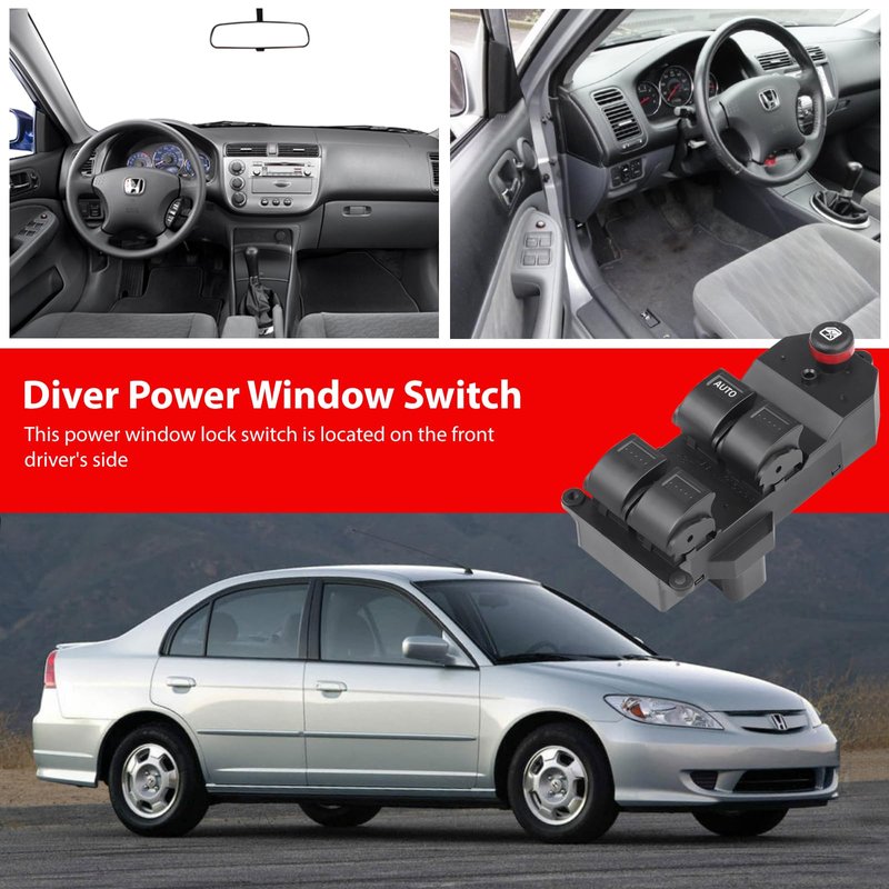 CMRDQD 35750-S9A-307 Driver Side Power Window Switch Compatible with 2001-2006 Honda Civic DX/EX/GX/LX/Si/Value Package/CR-V Replace 35750-S5A-A02ZA, 35750-S9A-305
