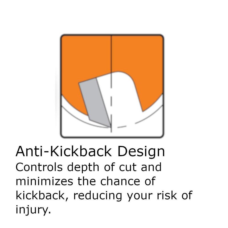 - Anti-kickback design to control the depth of cut and work safely