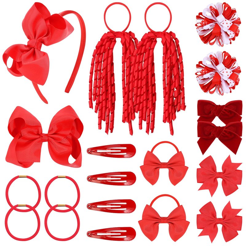 CN 20PCS Red Hair Bows for Girls, Bow Hair Clips Headband Hair Ties Hair Barrettes Ponytail Holders Curly Koker Bows Hair Accessories School Uniform Set for Little Girls Teens Toddler