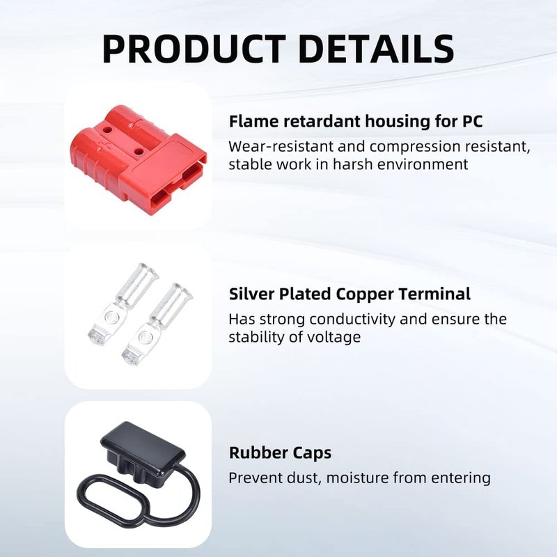 - ♥【Wide Range of Applicable 】The 50A 6-10 gague battery quick disconnect wire harness plug kit fits for power supply,forklifts, golf carts, tourist vehicles, tractors, electric scrubber, solar device and so on.
