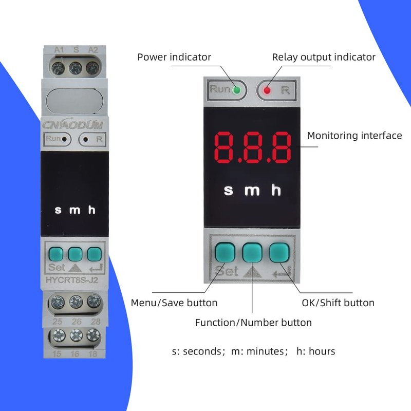 - ♥【Product Parameters】Operating voltage AC/DC 24-240V (50-60Hz) ; Working current 16A ; Wide time delay setting range of 0.1seconds-99hours. Relay working status is indicated by LED indicators.