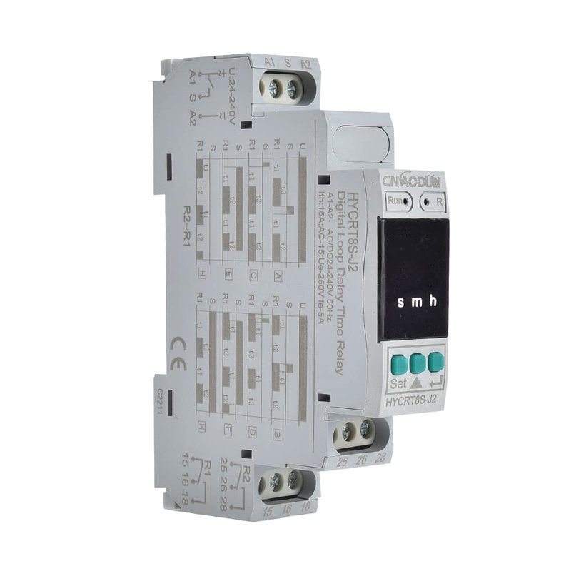 CNAODUN Cyclic Time Delay Relay Digital Display Dual Outputs HYCRT8S-J2 AC/DC 24-240V Button Adjustment Cycle Time Relay DIN Rail Mount Type