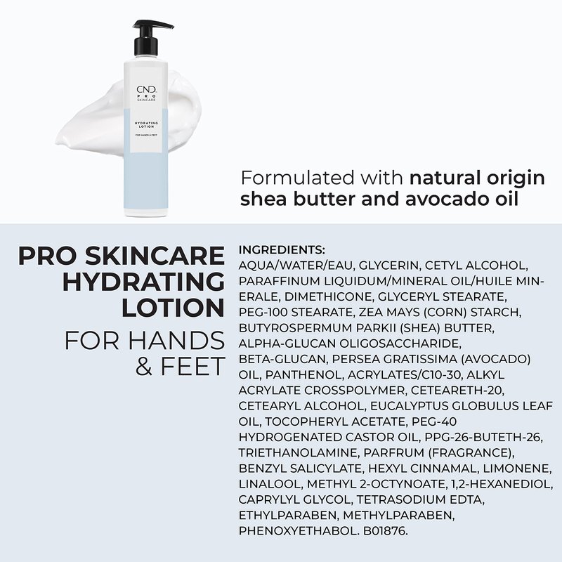 CND Pro Skincare Hydrating Lotion for Hands and Feet, Natural Origin Shea Butter and Avocado Oil Formula, 10.1 Fl Oz
