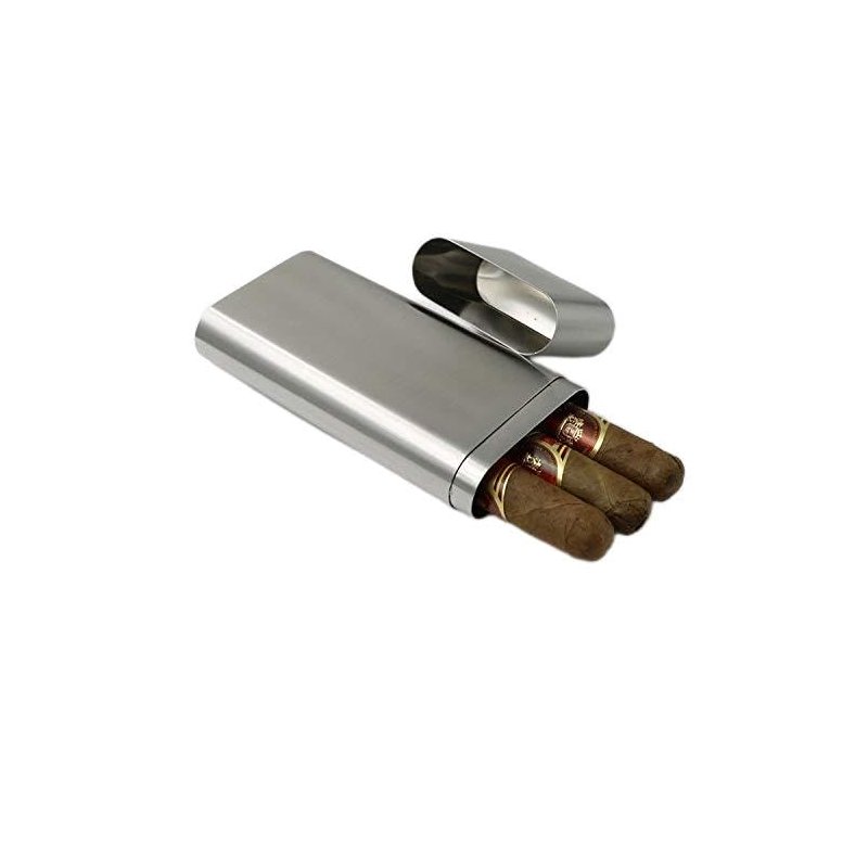 CNFLASK Stainless Steel Triple Cigar Case Cigar Tube Pocket Cigar Holder (Brush finish) (Stainless Steel, Brushed)