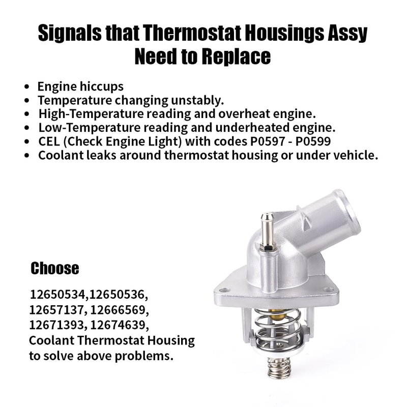 - ★Reliable Performance: With the OEM number 12674639, this engine-coolant thermostat housing assembly guarantees a good replacement for your vehicle's cooling system. It regulates the engine temperature effectively, preventing overheating and maintaining optimal performance.