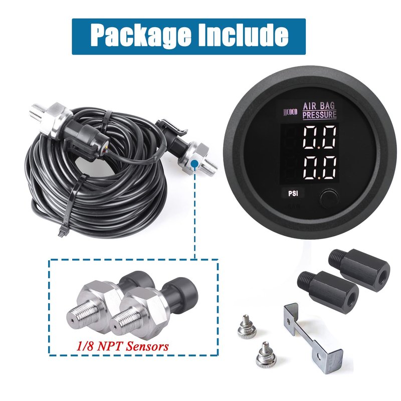 - Versatile Installation Options: Included with the kit are two 1/8 NPT sensors, allowing for flexible installation options to best suit the specific needs of different vehicles. Whether mounting the gauge inside the cab or in another convenient location, the included sensors ensure that the LED digital gauges can be set up to provide accurate readings from key points within the system