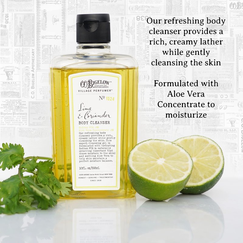 C.O. Bigelow Apothecary Duo, Lime Coriander Body Care Gift Box with Body Soap & Lotion, Gift Set of Two - Moisturizing Lotion & Liquid Body Wash for Dry Skin - 10fl oz Each