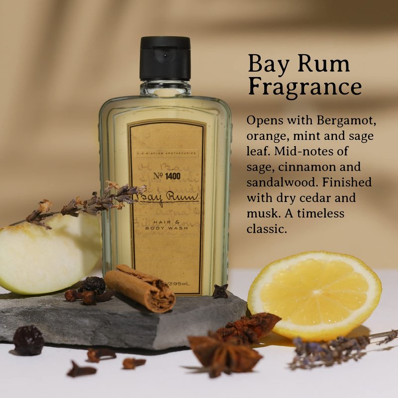 C.O. Bigelow Bay Rum Hair & Body Wash is a 2-in-1 formula that gently washes hair and skin with our classic historical Bay Rum Fragrance. Bay Rum Hair and Body Wash for men is great for travel or for daily use. This special 2-in-1 product is formulated with the amazing scent of original formulary Bay Rum. Contains refreshing and conditioning ingredients, including panthenol, aloe and cucumber extract.